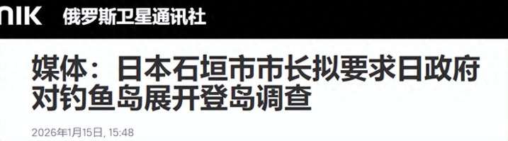 《媒体:日本石垣市市长拟要求日政府对钓鱼岛展开登岛调查》2026年1月15日 来源:俄罗斯卫星通讯社