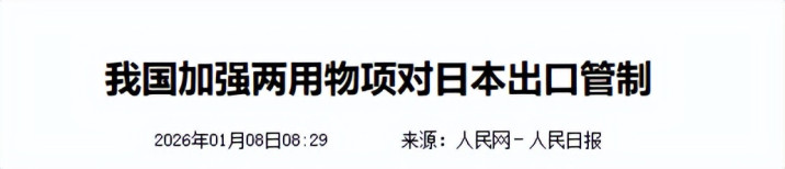 《我国加强两用物项对日本出口管制》2026年01月08日 来源:人民网-人民日报金河配资